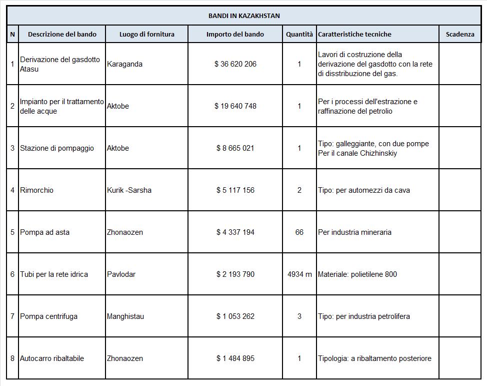 Nuovi bandi e appalti in Kazakhstan e Turkmenistan